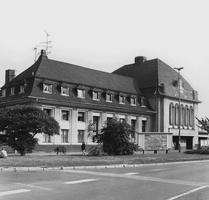 Als Ersatz des einstigen "Taunusbahnhofs" (erbaut 1839-40 ca. 150 m östlich an der Königsteiner Straße und mehrfach für "Sodener Bahn" bzw. "Hessische Ludwigsbahn" erweitert bzw. 1880 ersetzt) am Nordrand des Stadtteils von Armin Wegner und Hans Kleinschmidt 1912 entworfenes, doch erst 1920 vollendetes Empfangsgebäude, das in Situation und Gestaltung v. a. dem Bf Frankfurt am M. / Süd nahe kommt: Zwischen unterschiedlich dimensionierten Anbauten ein durch geschwungenes Walmdach mit Belvedere und Ziergiebel sowie gereihte Bogenfenster bereits äußerlich dominierendes Vestibül, das mit Unterführung und Treppen zu den auf dem Bahndamm angelegten Perrons vermittelt. - Östlich daneben ein Luftschutzbunker von 1942 aus Beton.