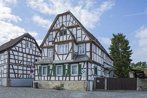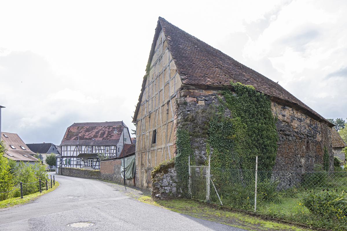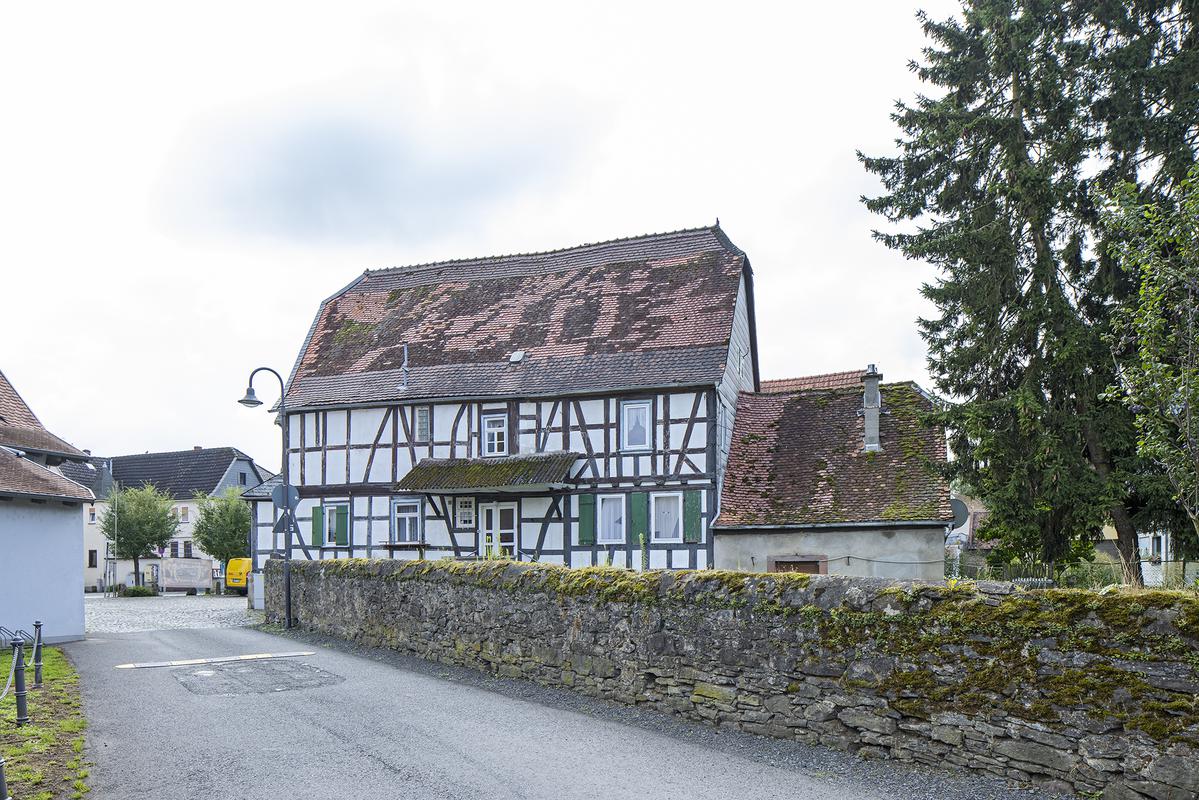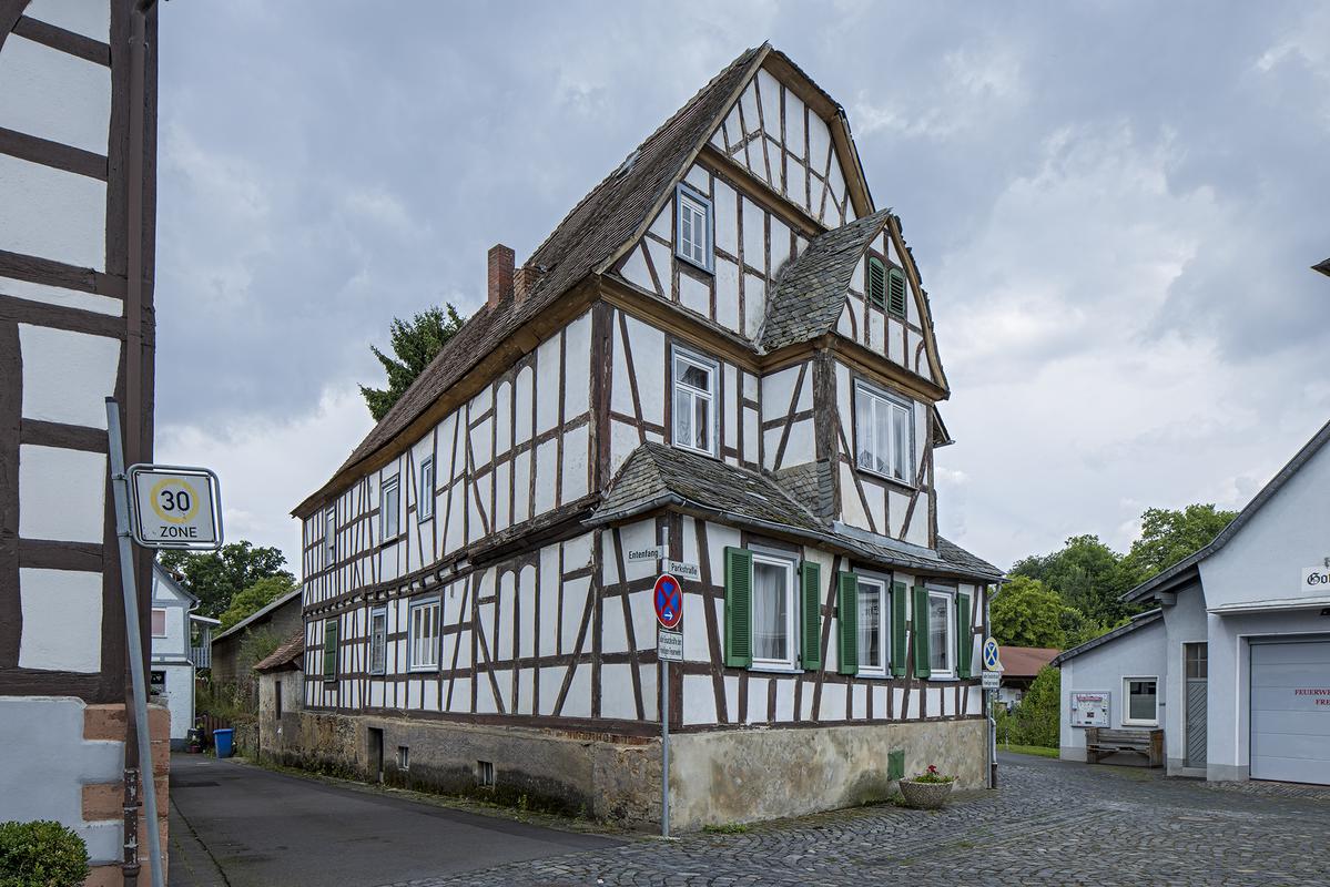 Großer Hof, der Süd-West-Ecke des Burgareals schräg gegenüber gelegen; er wird als Amtssitz einer der Stadener Ganerbenfamilien überliefert. Das Hauptgebäude in Fachwerk - vermutlich bereits aus dem 18. Jahrhundert - mit einem asymmetrischen Erkervorbau auf der zur Straße gelegenen Giebelseite. Die Scheune in der nordwestlichen Ecke der Parzelle inkorporiert Teile der ehemals vollständigen Ummauerung Stadens.