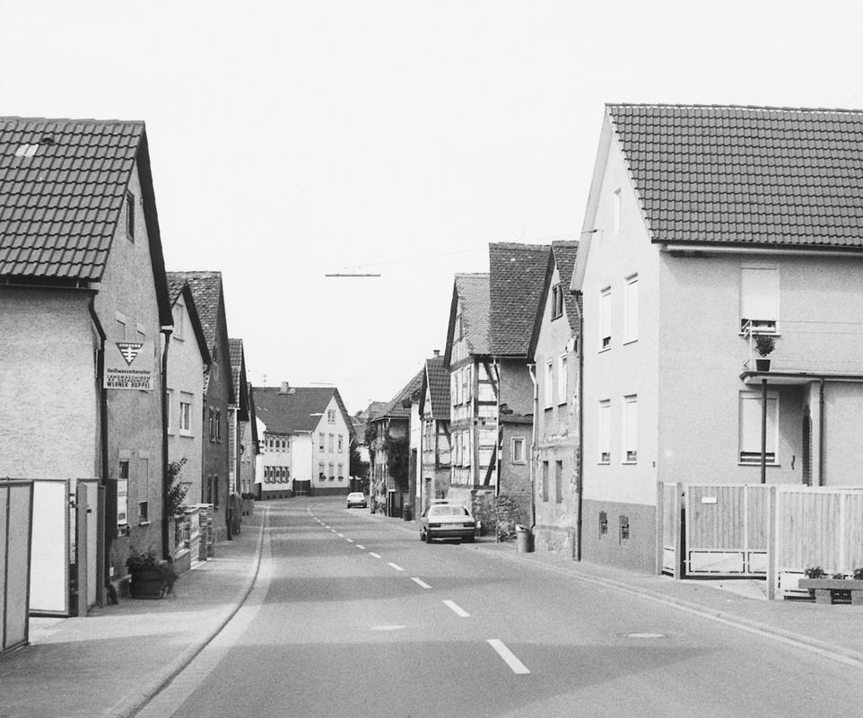 Obwohl der Ort seinen historischen Kern in der Gegend Schloßgasse-Weidgasse-Kronstraße hat, wird sein heutiges Bild geprägt von der Erweiterung des 17./18. Jhs. in Form eines Straßendorfes in Richtung Süden. Der Raum ist besetzt mit einer fast lückenlosen Reihung von kleineren barocken Hakenhofreiten, was die ortsentwicklungsgeschichtliche Qualität der Gesamtanlage im Gegenüber zum Schloß ausmacht.