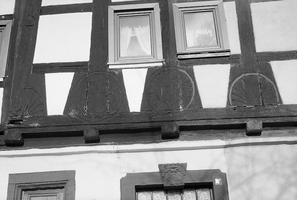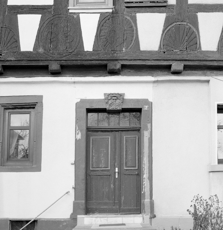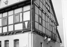 Zweigeschossiges ehemaliges Herrenhaus auf mittelhohem verputztem Steinsockel, das in seiner jetzigen Gestalt das Ergebnis verschiedener Bauphasen darstellt. Die Kellergewölbe und der Kern des massiven verputzten Erdgeschosses stammen vermutlich noch aus der Zeit der früher an dieser Stelle befindlichen Wasserburg. Jüngeren Datums ist wohl ein Fenstersturz an der linken Erdgeschossseite, der mit einem Allianzwappen Buchenau - Berlepsch und den Buchstaben I F V B (für Johann Friedrich von Buchenau), A E G V B (für Anna Elisabeth geb. von Berlepsch) sowie der Jahreszahl 1629 versehen ist. Der Türsturz des heutigen Eingangs trägt die Inschrift I A V V Z D (für Iohann Anton von und zu) LANGENSCHWARZ A M V G V (für Anna Maria Veronika geb. von) BASTHEIM ANNO 1713. Der Schlussstein des Sturzes ist mit dem Allianzwappen Langenschwarz - Bastheim und der Freiherrenkrone versehen. Das Obergeschoss des Gebäudes zeigt Sichtfachwerk mit zum Teil beträchtlichem Überstand. Die Konstruktion besteht in den rechten 2 Stockwerksdritteln aus sehr kräftigen Eckständern, unregelmäßigen Wandständern und doppelter Verriegelung. Auffällig sind hier die uneinheitlich gesetzten Fußstrebenhölzer, die zusammen mit dem Wandständer je eine zusammenhängende in etwa dreieckige Fläche bilden. Darauf sind Fächerrosetten, Sonnenräder und ähnliche Motive geschnitzt, ohne allerdings durch Bemalung hervorgehoben zu sein. Die heute unvollkommene Reihung wird früher durchgängig gewesen sein und überzog auch die rechte Giebelseite. Das Gebälk ist stark überstehend, die unregelmäßig sitzenden Balkenköpfe kragen aus, eine Reihe noch vorhandener Füllhölzer sind als Hohlkehlen ausgebildet. Form und Gestaltung des Fachwerks und seiner Details, die niedersächsische Einflüsse verraten, verweisen auf eine Entstehung noch im 16. Jahrhundert. Unterhalb der Gebälkzone auf der rechten Giebelseite sitzen drei Kragsteine, auf denen ursprünglich ein polygonaler Fachwerkerker gesessen haben dürfte. Das linke Drittel des Fachwerkgeschosses auf der Eingangsseite ist das Ergebnis einer späteren Veränderung. Bei der Neugestaltung des Vorplatzes vor dem "Alten Schloss" wurden vor einigen Jahren die dort noch vorhandenen Reste der Umfassungsmauer und der steinerne Stumpf des Prangers entfernt (in der heute nicht mehr existierenden Gaststätte "Zum Schlößchen" befand sich ehedem die Gerichtsstube). Das zwar an einigen Stellen durch z. B. neue Großflächenfenster oder die Fassung des Erdgeschosses gestörte Gebäude hat eine der ältesten Fachwerkaufbauten des Kreisgebietes. Es ist aus historischen und künstlerischen, aber auch wegen der Lage neben der jetzigen katholischen Kapelle, mit der es ein schlüssiges und früher mittels eines Turmes im Zwickel der beiden Gebäude auch baulich verbundenes Ensemble bildete, Kulturdenkmal.