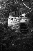 Den architektonischen Abschluss der Anlagen am Rotenrain, bevor sie anschließend in die Landschaft übergehen, bildet im Südwesten das sogenannte Schneckentürmchen. Es tritt an der oberen Hangkante rondellartig vor und bietet einen weiten Ausblick über das Lautertal bis hin zur Kirche und Schule von Blitzenrod. Auch besteht ein wirkungsvoller Sichtbezug zum Hainigturm, jedoch ist das Schneckentürmchen deutlich älter als dieser. Von seiner Architektur und seinem Standpunkt her ist der kleine Bau noch dem Zeitgeschmack der Burgenromantik zuzuordnen. Die bürgerlichen Gärten am Osthang des Eichbergs wurden ab 1898 im Zusammenhang mit dem sog. Schloss Eichhof (Am Eichberg 41) für Friedrich Hermann Riedesel zu einem aristokratischen Landschaftspark überformt. Die Planung und die Lieferung der Pflanzen erfolgten durch den Gartenarchitekten Franz Heinrich Siesmayer aus Frankfurt am Main. Aus dieser Zeit blieben ein großer Teil des heutigen Baumbestandes und die Grundzüge der Parkgestaltung erhalten; der direkte Bezug zum bekrönenden Schloss ist freilich durch jüngere Erweiterungsbauten gestört. Der Hauptzugang zum Park von der Straße Am Eichberg her führt zunächst durch ein Portal, dessen genutete Säulen aus Muschelkalk 1903 durch die Firma Philipp Holzmann, Frankfurt am Main, hergestellt wurden. Dazwischen schmiedeeiserne Torflügel. Die beiden kurz darauf den Weg säumenden Geländer mit barockisierenden Balustern begleiteten ehemals die Brücke über den hier fließenden Mühlgraben. Der Hauptweg (1906: "Fahrweg nach Schloß Eichhof") führt anschließend S-förmig zunächst durch eine Wiesenfläche, dann, nachdem er das ursprüngliche Gärtnerhaus (Am Eichberg 43) passiert hat, den Hang zum Eichhof hinauf. Am ansteigenden Weg blieben zwei neubarocke, als Voluten gestaltete Podeste für eine Sitzbank erhalten sowie im Hangbereich eine in den anstehenden Basalt gearbeitete "Grotte".