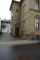 Gelber Backsteinbau, errichtet über grobem Steinsockel und differenziert gegliedert durch schmale Sandsteingesimse und regelmäßig gesetzte Fenster mit steinmetzmäßig bearbeiteten Gewänden. Im Erdgeschoss Fenster mit horizontalen, mehrfach profilierten Verdachungen. Über den Fenstern Bogenfelder, hier Reste einer vegetabilen Bemalung, im Obergeschoss mit der Jahreszahl 1891, dem Jahr der Erbauung. Eingang seitlich in einem risalitartigen Vorbau, hier mit originaler Eichentür. Im Krüppelwalmdach kleine Gaupen mit Pyramidenhauben und Knäufen. Markant das Traufgesims mit geschnitzten Konsolen zur Straße, rückseitig mit Deutschem Band.