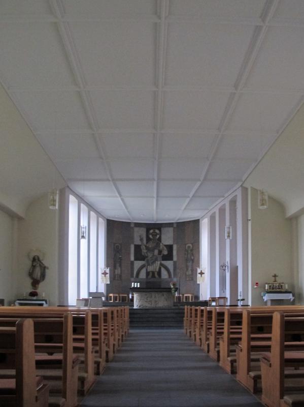 Die Wandmalerei im Altarraum fertige der Mainzer Maler Peter Paul Etz (1913-95): Der auf dem Regenbogen thronende Weltenrichter wird gerahmt von Maria, Namenspatronin der Dudenhofer Kirche, und Matthias, Namenspatron der Nieder-Rodener Mutterkirche. Die Kirchenfenster, die im Schiff stilisierte Motive der Lauretanischen Litanei zeigen, fertigte die Friedberger Firma Glas-Glatt. Eine Gesamtrenovierung der Kirche wurde 1988 abgeschlossen. Nordwestlich der Kirche, im Straßenverlauf zurückgesetzt, wurde Mitte der 1970er Jahre ein Pfarrzentrum ergänzt und damit der kleine Kirchenvorplatz gerahmt. Die seit der Bauzeit leergebliebene Nische im Nordwestgiebel der Kirche wurde 1991 mit einer neuen Marienstatue aus weißem Marmor versehen.