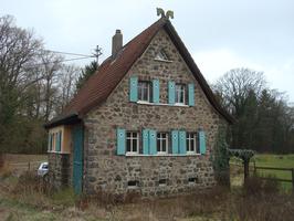 Freistehendes, eingeschossiges Wohnhaus aus Bruch- und Werksteinmauerwerk mit Souterrain und ausgebautem Dachgeschoss. Bemerkenswert ist das weit heruntergezogene, an der Giebelseite hervorspringende Satteldach mit auffälligem Giebelreiter bestehend aus zwei hölzernen, voneinander abgewandten Pferdeköpfen im Profil. Rückwärtige Giebelseite verputzt und verschalt. Die Fenster sind mit Klappläden mit Herzausschnitt versehen. Eine stockwerkshohe einseitige massive Vortreppe mit nachträglich angefügter Verdachung führt zum Eingang des Hauses. Das solitär an der Verbindungsstraße nach Kesselbach stehende ehemalige Arbeiterhaus der 1920er Jahre ist aus baukünstlerischen und städtebaulichen Gründen Kulturdenkmal gem. § 2.1 HDSchG.