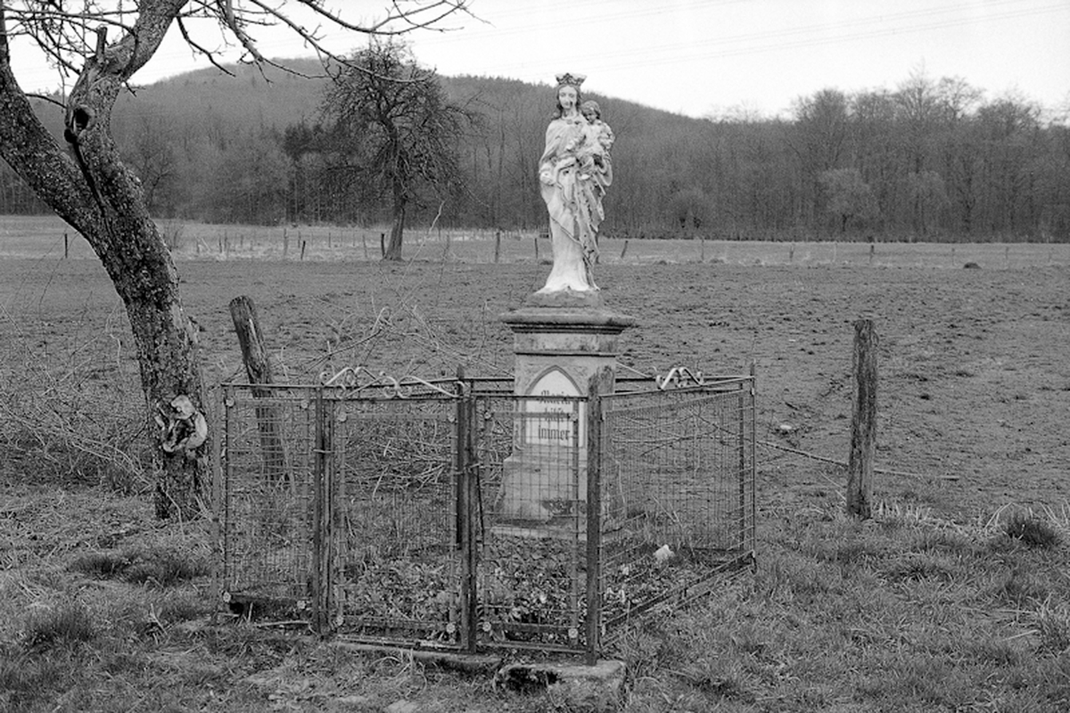 Gegenüber dem Hof Im Winkel 2 am Rande der Straße aufgestellte Vollplastik der Muttergottes, bezeichnet 1924. Die gekrönte Madonna mit dem Jesuskind auf dem linken Arm stellt eine schlichte, aber sorgfältig ausgeführte Arbeit dar. Das hohe Postament zeigt auf seiner Vorderseite unterhalb eines umlaufenden Profilbandes in einem spitzbogigen Zierfeld die Inschrift "Maria hilf immer". Die filigrane gusseiserne Einfriedung des Standbildes aus der Entstehungszeit hat sich weitgehend erhalten.