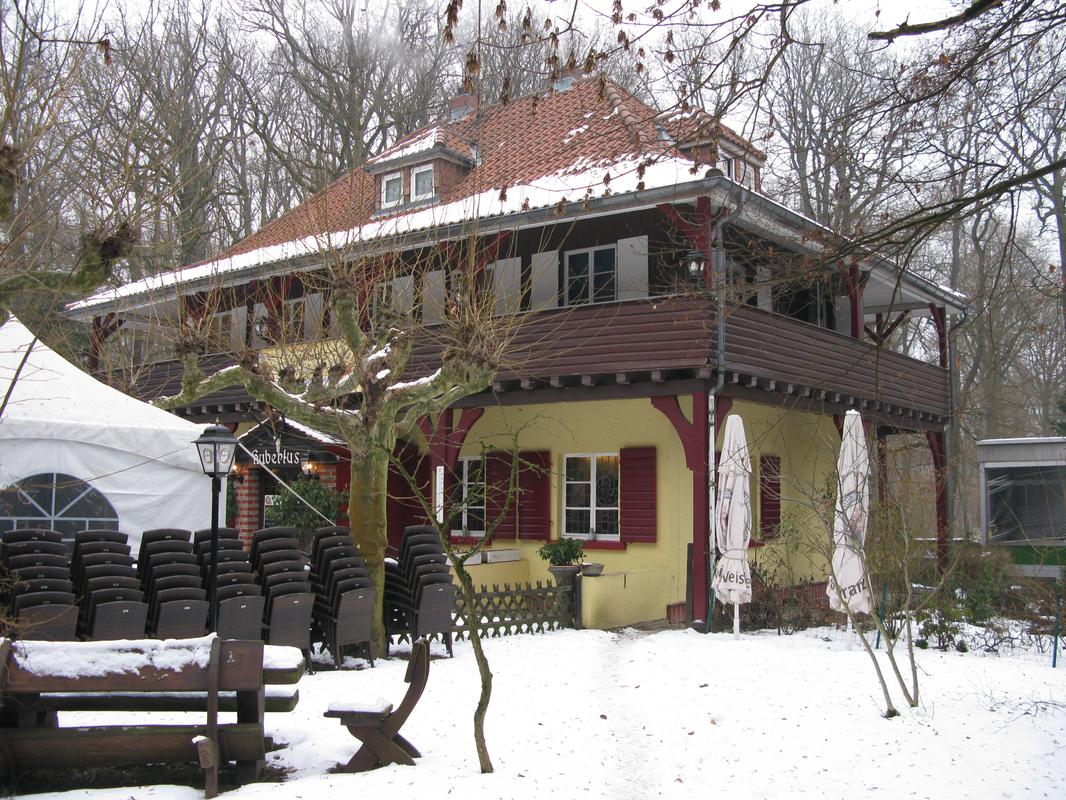 Vor dem Waldgasthaus befindet sich ein mit geschnittenen Platanen bestandener, vermutlich in den dreißiger Jahren entstandener Kaffee- bzw. Biergarten.