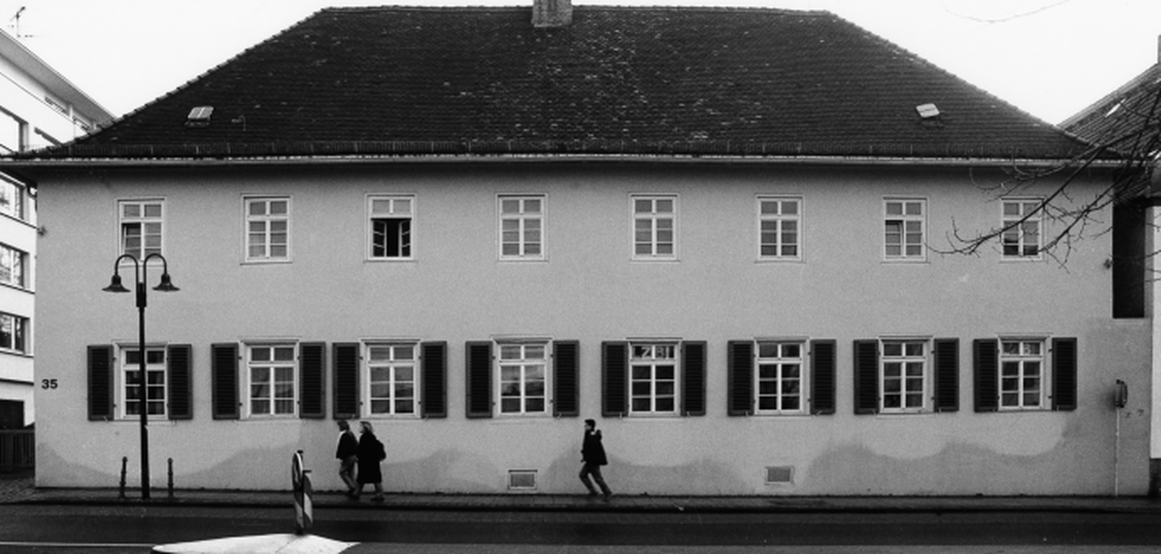 Die Straßenfront des zweigeschossigen, traufständigen Hauses wird durch acht Fensterachsen gleichmäßig unterteilt. Das Erdgeschoß ist durch höhere Fenster betont. Den oberen Abschluß bildet ein einfaches Walmdach.
