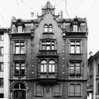 In gotisierendem Historismus aufwendig gestaltetes Wohnhaus von 1898 (Entwurf: Georg Küchler). Die Fassade zeichnet sich durch eine kontrastreiche Mischung verputzter Wandflächen und üppigem Sandsteindekor aus. Der große Reichtum der der Formensprache der Spätgotik entlehnten bauplastischen Details in qualitätvoller handwerklicher Ausführung (L. L. Ballon) schafft einen markanten, stadtbildprägenden Akzent.