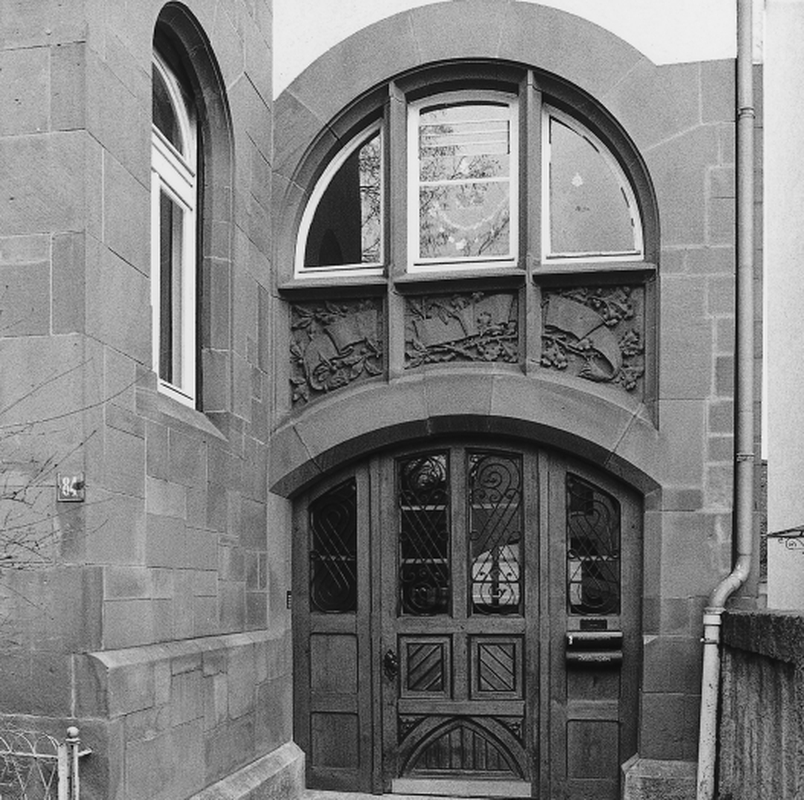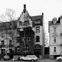 Späthistoristisches Wohnhaus mit reicher Werksteingliederung und Dekoration im neugotischen Stil. Breiter Risalit mit abgetrepptem Giebel und bekrönender Plastik; zweigeschossiger Vorbau in rotem Sandstein mit abschließendem Blendmaßwerk. Im Giebelwerk und über dem Haustor Halbreliefs.