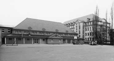 Die früher getrennte Knaben- und Mädchenturnhalle verbindet die beiden Schulhauptgebäude. Langgestreckter Baukörper mit ursprünglich offenen Unterstandshallen an der Längsseite des Gebäudes. Auf der dem westlichen Schulhof zugewandten Seite schmückt ein Tu maufbau die Mittelachse des Vorbaues. Hohes langgestrecktes Walmdach mit Fledermausgauben.