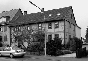 Traufständige zweigeschossige Streckhofanlage die gegen Ende des 19. Jahrhunderts errichtet wurde. Der östliche Gebäudeteil war ursprünglicher Wohntrakt, der westlich anschließende die Scheune. Der Wohnteil zeigt sich als zweigeschossiger Fachwerkbau auf Sandsteinsockel. Die Fachwerkkonstruktion ist mit einfach verriegelten geschosshohen Streben an Bund- und Eckständern ausgesteift. Auch die Scheune steht mit einer zweigeschossigen einfachen Fachwerkkonstruktion über einem niedrigen Sockel. Die ehemalige Tenne ist heute im Erdgeschoss massiv ergänzt.