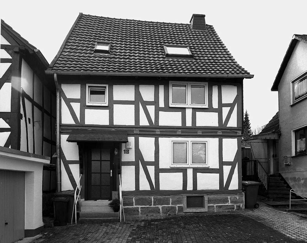 In einer Hofsituation aufgestelltes Tagelöhnerhaus aus dem frühen 18. Jahrhundert. Der zweigeschossige Rähmbau ist auf einem Sandsteinsockel errichtet, abschließendes Satteldach. Die Konstruktion ist an Bund- und Eckständern mit Dreiviertelstreben einfach verriegelt. Leicht profilierter Geschossübergang.