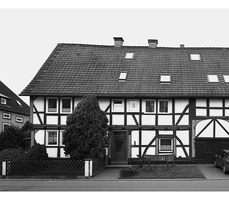Ehemaliges Einhaus aus dem späten 17. Jahrhundert. Die Fachwerkkonstruktion wird durch Dreiviertelstreben an den Bund- sowie halbe Mannfiguren an den Eckständern verstärkt, umlaufender profilierter Geschossversprung. Von künstlerischer Bedeutung ist die aufwendige Rankenornamentik an den Eckständern, Tür- und Torpfosten sowie den Kopfbändern. Der Hausspruch auf der Stockschwelle des Obergeschosses lautet: "WER GOTT VERTRAUT HADT WOHLGEBAUDT IM HIMMEL UNDT AUF ERDEN WER SICH VERLEST AUF JESUM CHRIST DEM WIRT DER HIMMEL WERDEN ICH BIN JUNG GEWÄSEN UNDT BIN ALT WORDEN UNDT HABE NOCH NIE GESEHEN DEN GERECHTTEN VERLASSEN ODER SEINEN SAMEN NACH BRODT GEHEN". Im Torsturz heißt es: "ALLE DIE MICH KENNEN DEN GÄBE GOTT WAS SIE MIR GÖNNEN". Im südlichen Giebeldreieck: "SOLI DEO GLORIA".