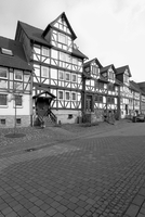 Das Wohnhaus wurde laut Inschrift im Sturzbalken nach Anno 1732 errichtet. Die dreigeschossige Rähmkonstruktion steht auf einem bossierten Sandsteinquadersockel unter einem Satteldach, traufseitiger Geschossversprung. An den Eckständern festigen zweifach verriegelte halbe Mannfiguren das Fachwerk, in den Brüstungsfeldern Diagonalstreben. Die Kopfbänder und Eckständer sind mit floraler Schnitzornamentik verziert.