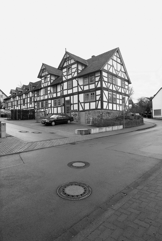 Der älteste Teil des im Kreuzungsbereich gelegenen ehemaligen Streckhofs ist inschriftlich in die zweite Hälfte des 18. Jahrhunderts datiert. Die zweigeschossige Rähmkonstruktion steht auf einem Sandsteinsockel, der ehemals als Stall diente. An den Eckständern Dreiviertelstreben, Hals- und Brustriegel. Dreiseitiger, profilierter Geschossüberstand mit gerundeten Füllhölzern und Balkenköpfen. Der nordöstlich an das Wohnhaus angrenzende Wirtschaftstrakt ist nur unwesentlich später als das Wohnhaus entstanden und ist in seiner Fachwerkkonstruktion dem Ernhaus angeglichen. Um 1870 wurde hier ein Stall mit Fruchtspeicher angebaut. Die ehemalige Streckhofanlage ist von städtebaulicher und ortsgeschichtlicher Bedeutung als in mehreren Bauabschnitten entstandene Hofanlage in ortsbildprägender Lage.