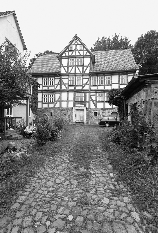 Das Hauptgebäude des ehemaligen Dreiseithofs ist über dem Eingangsbereich in das Jahr 1648 datiert. Es ruht auf einem Sandsteinsockel mit mehreren Tür- und Fensteröffnungen. An der Straßenfassade befindet sich ein Spitzbogen, der einen gotischen Ursprung des Gebäudes vermuten lässt. Darüber zweigeschossige, zweifach verriegelte Rähmkonstruktion mit Dreiviertelstreben an Bund- und Eckständern, traufseitig profilierter Geschossüberstand. Die Eingangstür trägt die Inschrift "D.C.W. - H.C.W.C.M. 1750". 1807-13 diente das Gebäude der französischen Kantonsregierung, dem "Friedensgericht" und dem "Maire" (Bürgermeister) als Unterkunft.