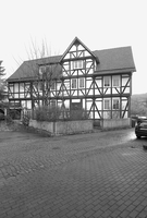 Das giebelständige zweigeschossige Fachwerkgebäude wurde Mitte des 18. Jahrhunderts neben dem heute unterirdisch verlaufenden Mühlgraben errichtet. Erweiterung zum Streckhof durch eine nordwestlich anschließende Scheune. Zweifach verriegelte Rähmkonstruktion mit dreiseitigem profiliertem Geschossüberstand, Mannfiguren an Bund- und Eckständern, im Obergeschoss Brüstungsstreben.
