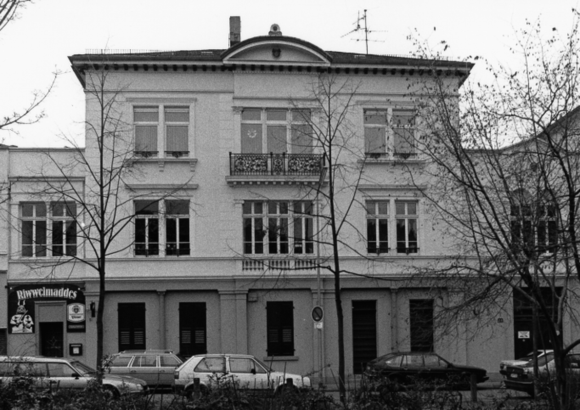 Elegantes spätklassizistisches Wohnhaus um 1872. Dreiachsiger symmetrischer Baukörper mit seitlichen Anbauten. Schmucker, die Mittelachse betonender Risalit mit Baluster- und Gitterbrüstungen, pilastergerahmte Drillingsfenster mit Zitaten der drei klassischen Säulenordnungen; in Traufhöhe auffälliges Konsolgesims, darüber in der Mittelachse flachbogiger Giebel mit krönender Frauenbüste. Qualitätvoller Baukörper in stadtbildprägender Lage am Johannesplatz.