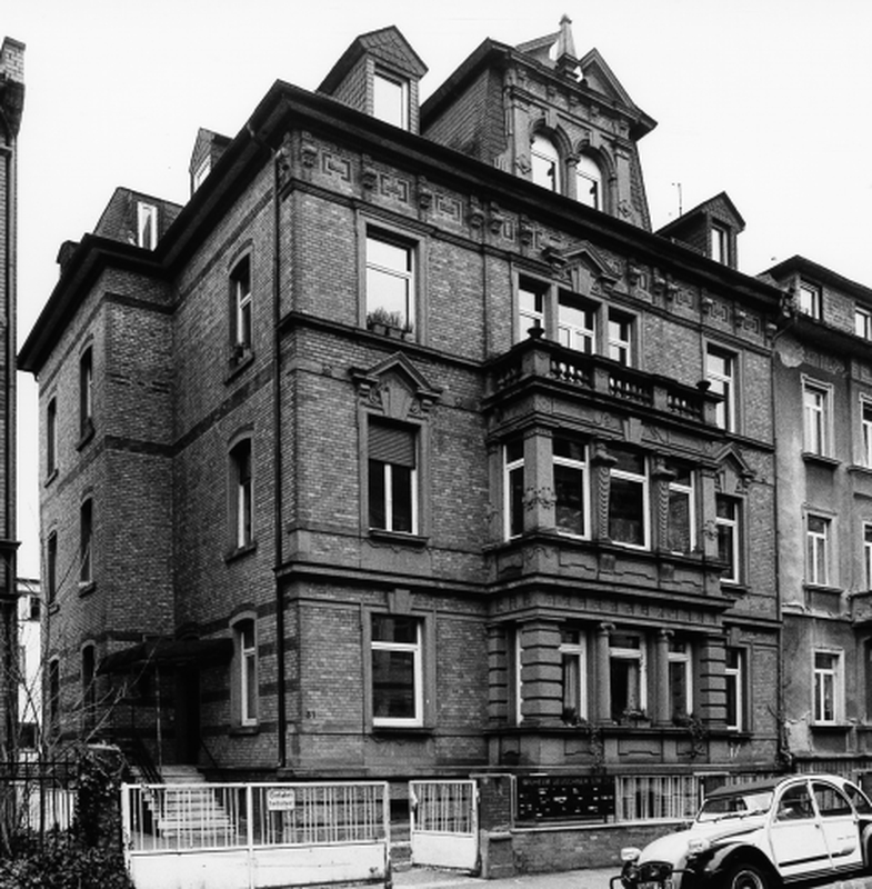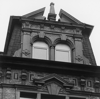 Stattlicher symmetrischer Klinkerbau mit dem aufwendigen Werksteindekor der Neurenaissance. Giebelbekrönte Mittelachse mit dekorativ bereichertem Vorbau; unter der Traufe breites Konsolgesims mit farbigem Schmuckfries. Pilastergerahmtes Zwerchhaus mit gesprengtem Dreieckgiebel und Obelisk.
