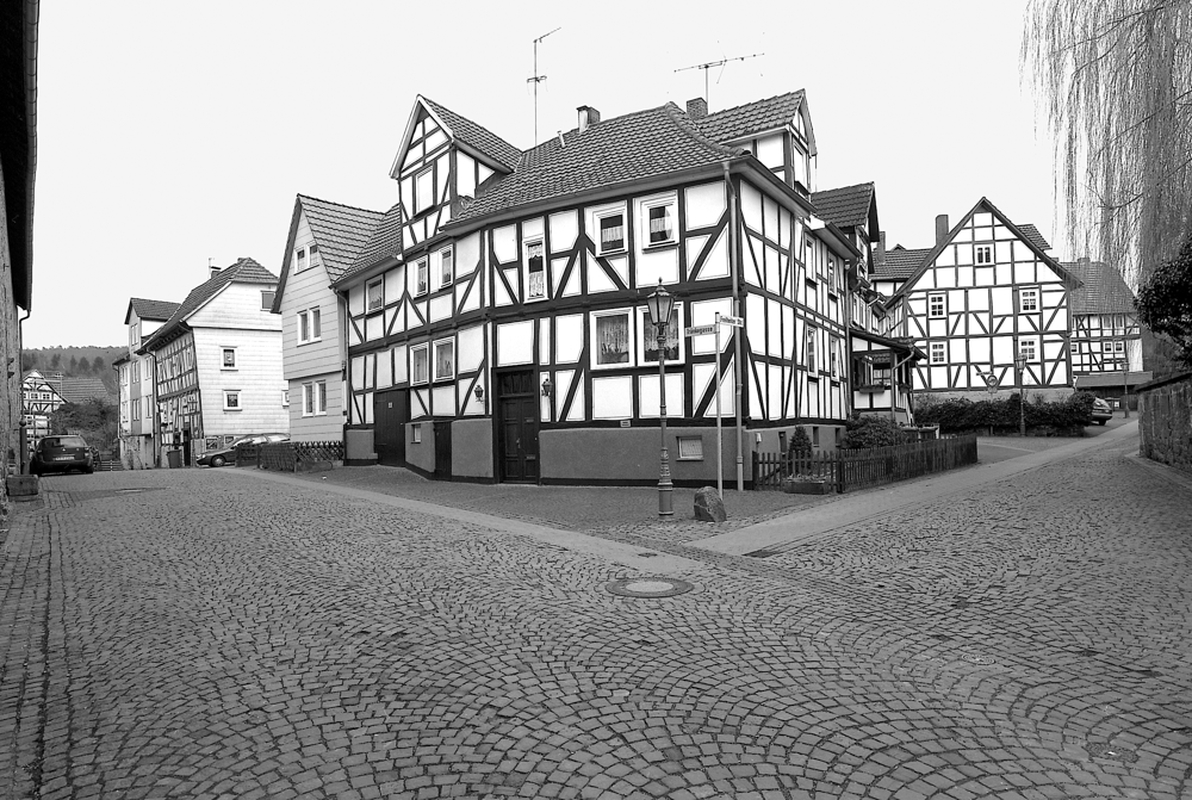 Im Kreuzungsbereich zur Freiheiter Straße steht das zweigeschossige Fachwerkhaus aus dem frühen 18. Jahrhundert. Die Rähmkonstruktion auf einem Sandsteinsockel unter einem flach geneigten Walmdach. Das Fachwerk ist mit einfach verriegelten Dreiviertelstreben an Bund- und Eckständern ausgesteift, traufseitiger Geschossüberstand, jeweils ein Zwerchhaus an Trauf- und Giebelseite.