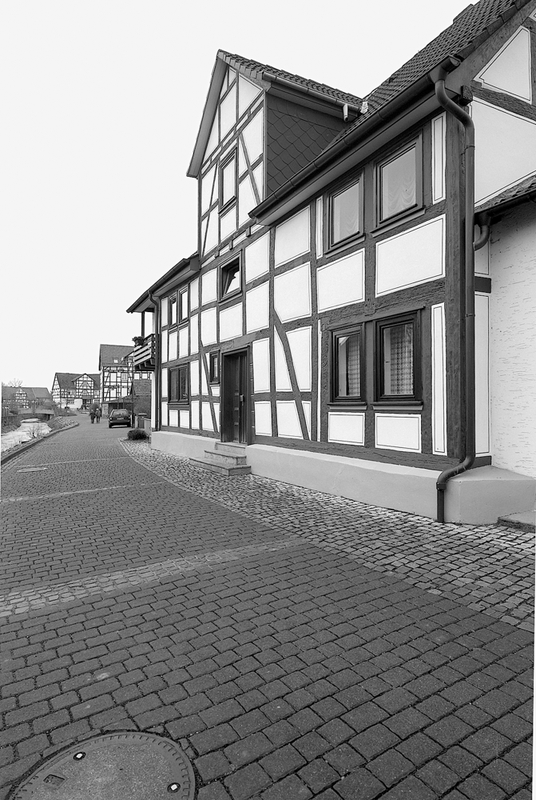 Der Ständerbau gehört zu den ältesten Gebäuden Niederkaufungens. Der linke Türständer zeigt die Jahreszahl 1644. Dreizonige Gliederung in Eingangs-, Stall- und Wohnbereich. Die Türständer sind mit Schnitzereien verziert und zeigen eine Quaderung, was auf die Verwendung älteren Baumaterials, vielleicht aus der Renaissance hindeutet.