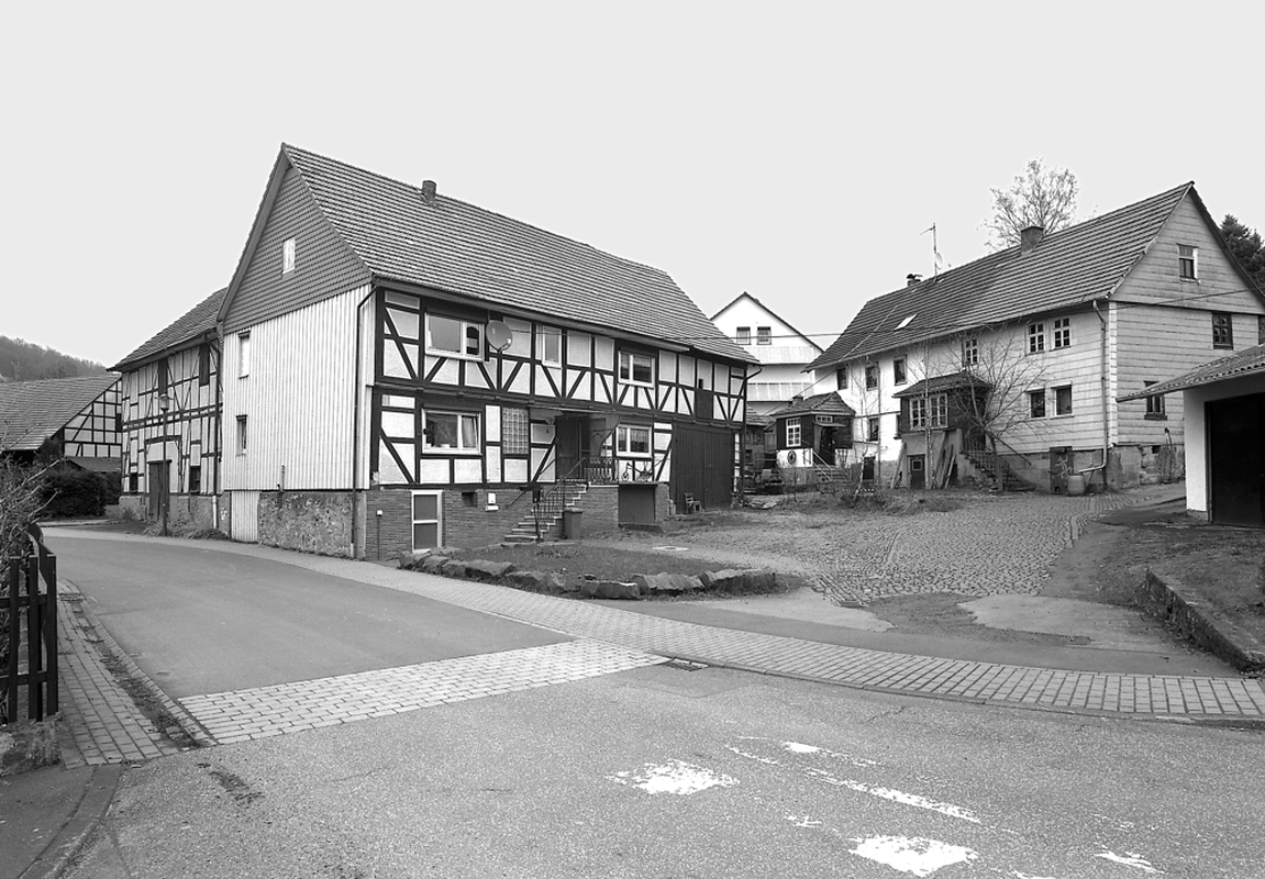 Winkelförmige Hofanlage, die in der ersten Hälfte des 18. Jahrhunderts als Einhaus errichtet und im frühen 19. Jahrhundert erweitert wurde. Das zweigeschossige Einhaus zeichnet ein traufseitiger Geschossüberstand aus, die Fachwerkkonstruktion ist mit zweifach verriegelten Dreiviertelstreben an den Eckständern und Halbstreben gefestigt. Das Fachwerkgefüge der Scheune ist durch zweifach verriegelte geschosshohe Streben versteift.