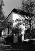 Das Wohnhaus des Darmstädter Malers Ernst Vogel entstand 1950/51 nach Plänen des Architekten Heinrich Berger. Zentraler Blickfang des im sparsamen Baustil der Nachkriegsjahre konsequent gestalteten Pultdachhauses ist das GIasmosaik an der Eingangsfassade. Es gehört zu den charakteristischen Arbeiten Ernst Vogels aus der Nachriegsepoche und zeigt ein abstraktes Bild: zwei Menschen, umgeben von Pflanzen.