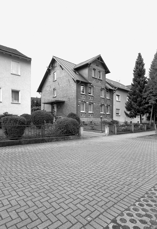 Zweigeschossiges Backsteingebäude aus der Zeit um 1900. Die Brüstungsfelder sind mit gelben Klinkersteinen eingerahmt und zeigen Kreuzmotive, die Fensterlaibungen werden durch einen Wechsel von roten und gelben Steinen betont. Der Geschossübergang zum ersten Obergeschoss wird durch einen Fries aus schräg gestellten Klinkersteinen hervorgehoben.
