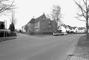 Die ehemalige Schule wurde 1905/06 erbaut und 1934 um zwei Klassenräume erweitert. Der zweigeschossige Backsteinbaukörper wird durch vorspringende Gebäudeteile und Risalite optisch aufgelöst und verfügt über ein hoch aufragendes Dachgeschoss. Die Fensteröffnungen zeigen einen Abschluss in Segment- oder Spitzbogenform sowie profilierte Fensterbänke aus Sandstein. Im seitlich gelegenen Risalit befinden sich Fensternischen mit kleeblattförmigen Bogenabschlüssen. Darunter ist eine Sandsteintafel: "Nicht für die Schule, sondern für das Leben lernen wir." Original erhaltene Eingangstür. Rückwärtig eingeschossiges Nebengebäude mit Fachwerkdrempel.