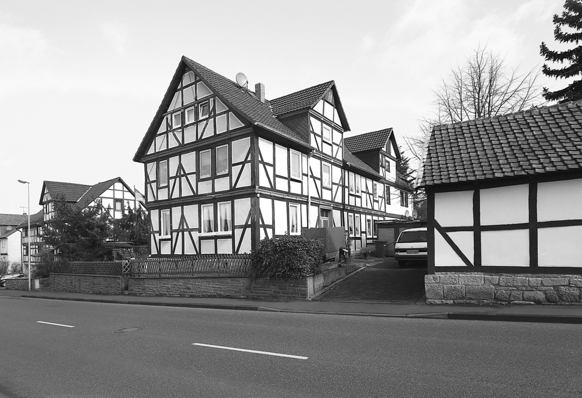 Das heute in zwei Hälften unterteilte Fachwerkhaus ist als ehemaliges Forsthaus aus der zweiten Hälfte des 18. Jahrhunderts. anzusprechen. Die unverputzte, zum Garten orientierte Traufseite zeigt eine Rähmkonstruktion mit einem einfach verriegelten Eichenfachwerkgefüge. An Bund- und Eckständern befinden sich Dreiviertelstreben, umlaufender profilierter Geschossüberstand.