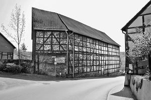 Die Fachwerkscheune schließt eine dreiseitige Hofanlage ab und wurde in der ersten Hälfte des 19. Jahrhunderts erbaut. Sie bildet eine Torsituation zum historischen Ortskern. Das einfach verriegelte Fachwerkgefüge zeigt annähernd quadratische Gefache und wird durch Langstreben ausgesteift. Auf der Hofseite ist traufseitig ein großes Vordach als Geräteunterstand angefügt worden.