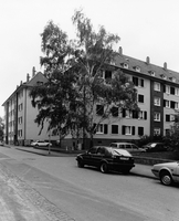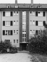 Im Rahmen des städtischen Wohnungsbauprogramms zur Behebung der Wohnungsnot der Nachkriegszeit entstand um 1930 vermutlich als Entwurf des Stadtbauamtes diese U-förmige Wohnanlage; drei viergeschossige Blocks mit markanten, durch ausgeprägte Aufschieblinge weit vorkragenden Walmdächern. Klinkerbänder zur Betonung der Sockel und Treppenhäuser sowie Fenster mit Läden und liegender Versprossung prägen die unaufdringlichen Fassaden.