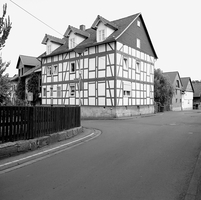 Das Wohnhaus einer dreiseitigen Hofanlage ist giebelständig zur Straße orientiert und inschriftlich auf 1857 datiert. Zweigeschossiger Rähmbau mit aufgesetztem Drempel. Das Fachwerkgefüge wird durch Stockwerksstreben an den Eck- und Bundständern sowie an den gedoppelten Fensterstielen ausgesteift.