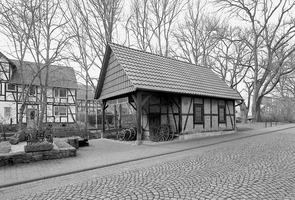 Zwischen der Karlstraße und dem Lauf der Espe liegt die Schmiede aus dem frühen 19. Jahrhundert. Das eingeschossige Fachwerkgebäude mit Satteldach steht auf einem niedrigen Sandsteinsockel. Das einfach verriegelte Fachwerkgefüge wird durch Langstreben an den Eckständern ausgesteift. Die Gefache sind mit Backsteinen ausgemauert. Vor dem Werkstattraum befindet sich ein überdachter Vorplatz, der gegenüber dem Straßenniveau um eine Stufe abgesenkt ist. Das Satteldach ruht hier auf Stützen, die auf Sandsteinquadern stehen. Die Aussteifung der Konstruktion erfolgt hier über Kopfbänder zwischen Stützen und Pfetten. Die rückwärtige Giebelfassade ist als geschlossene Backsteinwand ausgebildet. Im Inneren der Schmiede werden heute zu Ausstellungs- und Vorführzwecken verschiedene Schmiedewerkzeuge aufbewahrt.