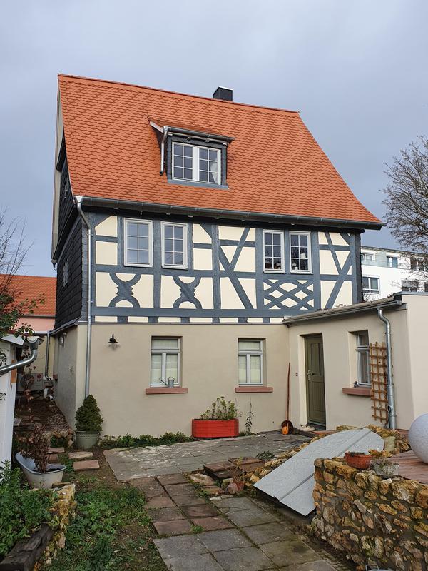 Der zweigeschossige Baukörper weist im weitgehend bauzeitlich erhaltenen Obergeschoss auf der Südseite repräsentatives Schmuckfachwerk mit Feuerböcken, Fünferkreuz und halber Mannfigur auf. Die dendrochronologische Untersuchung ergibt eine Datierung um 1681. West- und Nordwand zeigen hingegen ein schlichtes konstruktives Gefüge. Das Erdgeschoss im 20. Jh. in Teilen massiv ersetzt und bereits im 19. Jh. partiell strukturell verändert.