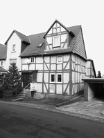 Das traufständig orientierte kleinmaßstäbliche Einhaus stammt aus dem späten 18. Jahrhundert. Das zweigeschossige Eichenfachwerkgefüge ist einfach verriegelt und wird durch Halbstreben an Bund- und Eckständern ausgesteift. Die Fensteröffnungen sind in ihren Proportionen erhalten.