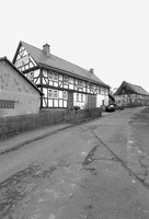 Anfang des 18. Jahrhunderts leicht winklig zur Rundstraße errichtetes Einhaus. Zweigeschossige Rähmbauweise auf einem halbhohen Sandsteinsockel. Das einfach verriegelte Eichenfachwerkgefüge ist zum Teil erneuert und wird durch Dreiviertelstreben und ein halbes Geschoss hohe Streben ausgesteift. Das Erdgeschoss ist rechtsseitig massiv erneuert. An der Trauf- und Giebelseite zeigt sich ein profilierter Geschossüberstand, der sich auch im Giebelfeld wiederholt.
