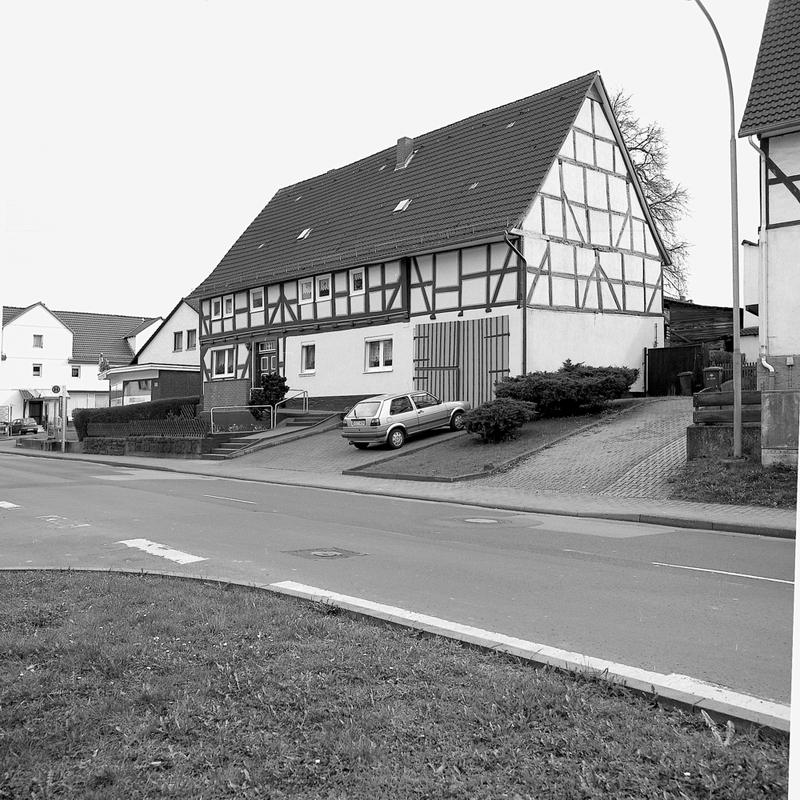 Das ehemalige Einhaus stammt im Kern aus der ersten Hälfte des 18. Jahrhunderts und wurde im frühen 19. Jahrhundert zum Streckhof erweitert. Das zweigeschossige Eichenfachwerkgefüge ist im Erd- und Obergeschoss einfach verriegelt und wird durch Dreiviertelstreben an Eck- und Bundständern ausgesteift. Traufseitig zeichnet sich im älteren Gebäudeteil ein profilierter Geschossüberstand ab. Klassizistische Eingangstür mit Oberlicht. Der westliche Erdgeschossbereich ist massiv erneuert.