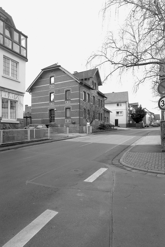 Anfang des 20. Jahrhunderts traufständig an der Korbacher Straße im historischen Ortskern errichtetes Wohnhaus. Das zweigeschossige Backsteingebäude ruht auf einem Sandsteinsockel aus Rustikamauerwerk. Die Straßenfassade zeigt eine symmetrische Ansicht. Das rote Sichtmauerwerk ist mit Schmuckformen aus gelben Backsteinen verziert. So werden die Segmentbögen der Fensteröffnungen, die Höhe der nicht mehr vorhandenen Oberlichter, die Brüstungshöhen und die Geschossübergänge mit Friesen aus gelben Backsteinen betont. Die Brüstungen der Fenster sind mit gelben Backsteinen eingerahmt und zeigen Rauten- oder Kreuzmotive.