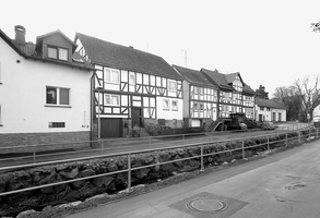 Traufständig errichtetes ehemaliges Einhaus, das im Türpfosten des Eingangsbereichs auf 1802 datiert wird. Das zweigeschossige Gebäude wurde in Rähmbauweise auf einem Sandsteinsockel errichtet. Das einfach verriegelte Eichenfachwerkgefüge wird durch Dreiviertel- und Brüstungsstreben ausgesteift. Im Obergeschoss sind die Dreiviertelstreben zweifach verriegelt. Die Eckständer, die Türpfosten und die Halsriegel im Obergeschoss sind mit Flachschnitzereien verziert, die Lebensbäume und Sternmotive zeigen. Der ehemalige Stallzugang ist in der Sockelzone noch erhalten.