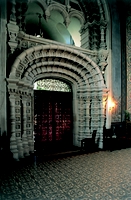 Die Fassade ist mit vielfältigem Bauschmuck reich gegliedert und durch besonders wirkungsvolle Schmuckfriese abgeschlossen. Die wuchtigen Sandsteinpilaster und -bögen kontrastieren mit lebhaften Klinkerflächen und farbigen Mosaikbildern, einem ornamentalen Majolikafries von Villeroy & Boch sowie dem an Traufe und Giebel umlaufenden, vergoldeten Schmuckband. Die auch im Innern überreiche Ausstattung mit Mosaikarbeiten und Ausmalung nach Entwürfen des russischen Malers Viktor Michajlowitsch Wasnezow wurde erst 1903 vollendet.