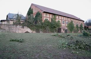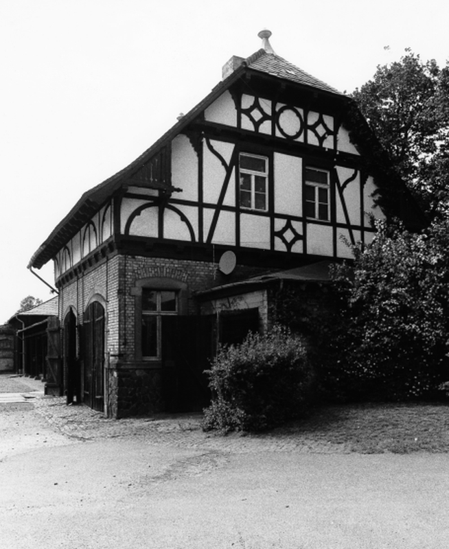 Die zwei kleinen Fachwerkhäuser - ein größeres am Eingang zum Hof, ein kleineres im hinteren Bereich des Areals - sind wegen ihres reichen, gut erhaltenen Sichtfachwerkes bemerkenswert. Sie stammen aus der Zeit um 1900 und gehörten zur ehemaligen Großherzoglichen Hofmeierei, der heutigen Milchzentrale.