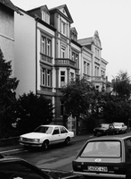 Fast identisches dreigeschossiges Doppelmiethaus des Historismus um 1900. Vorgelagerte polygonale Mittelrisalite mit Balkonabschlüssen. Unterschiede neben der farblichen Gestaltung des Hauses, nur in der Ausbildung der dekorativen Mittelzwerchhäuser, als geschweifte Renaissancegiebel oder als klassizistischer Dreiecksgiebel. Kunstvolle neobarocke Sandstein-Bauzier an Fenstern, Brüstungen und Gebäudekanten.