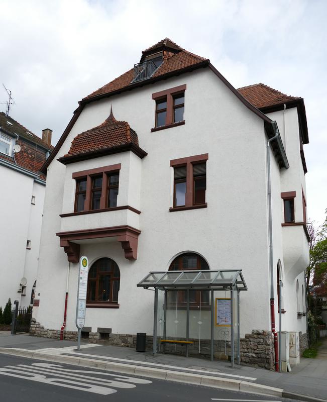 Spätgründerzeitliche Villa mit Arztpraxis von 1903 mit weitgehend bauzeitlicher Ausstattung in Jugendstilformen. Sie besitzt baukünstlerischen Denkmalwert.