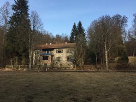 Das benachbarte Stallgebäude zeittypisch aus Ziegelstein gemauert, mit verbrettertem Scheunenaufbau.