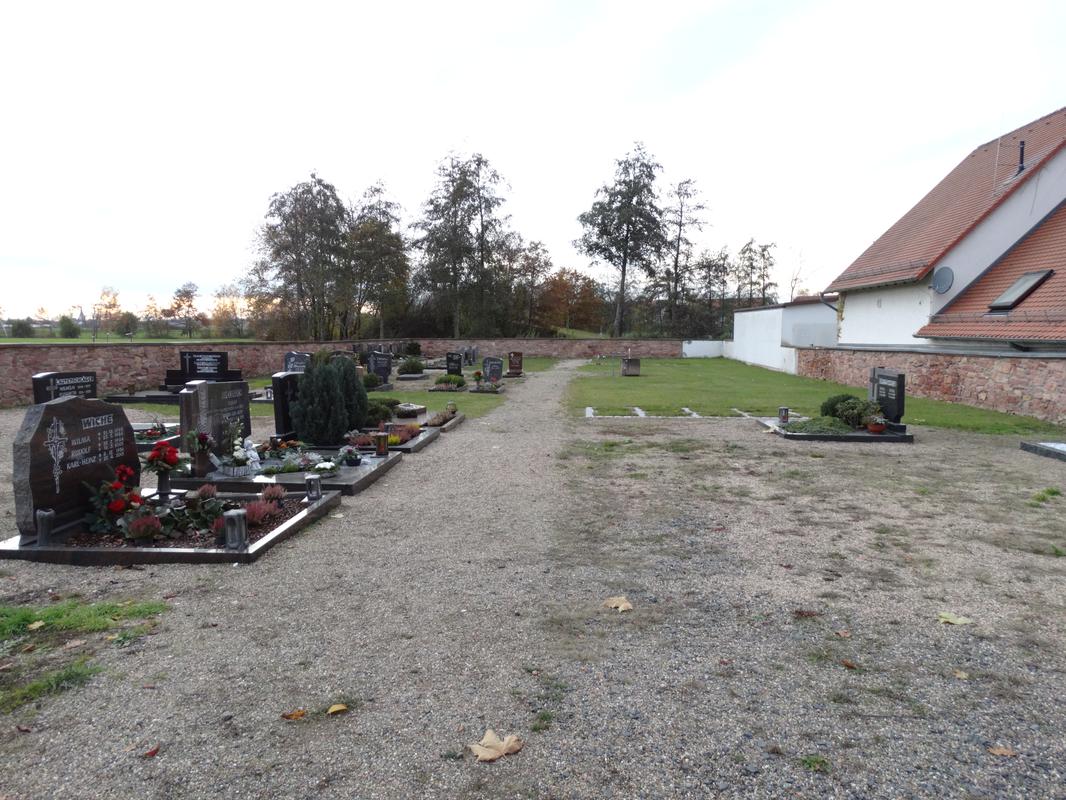 Auf dem am südlichen Dorfrand gelegenen Friedhofsareal hat sich die historische Einfriedungsmauer erhalten. Sie ist mitsamt ihrer handwerklich gut gearbeiteten gusseiserner Toranlage Kulturdenkmal aus ortsgeschichtlichen Gründen.