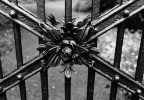 Das kunstvoll geschmiedete Tor gehört zu einem Seiteneingang des Botanischen Gartens. Das Tor stammt aus der Zeit um 1900. Stilistisch gehört es zur Architektur des Historismus. Typisch ist die schlichte Grundform des Tores mit vertikalen Gitterstäben und Kreuzbändern im unteren Teil. Reich verziert hingegen ist der umlaufende Rahmen mit dem bekrönenden Schriftband.