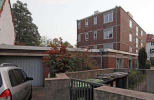 Das Wohnhaus wurde 1966 erbaut. Architekt war der Regierungs-Baumeister a.D. Theodor Hector. Das Mietwohngebäude ist ein sehr sachlicher, an den Prinzipien der klassischen Moderne orientierter Entwurf mit zurückhaltender, klarer Linienführung. Die flächige Fassade ohne jedes Ornament ist streng gegliedert mit wertigen Materialien, wie rotem Klinker in natürlichem Farbenspiel, horizontaler Sichtbetonbänderung und den scharf eingeschnittenen, bündig liegenden Aluminiumrahmen der Fenster. Das niedrige Eingangs- und Garagengeschoss, hebt sich durch eine rhythmische Gliederung mit grauen Aluminium-Toren und vertikal mit roten und blauen Fliesen gebänderten Wandflächen derart vom übrigen Bau ab, dass der dreigeschossige darüber ruhende Wohntrakt zu schweben scheint. Der eingeschossige, seitlich angrenzende Bungalow für den Hausmeister weist die gleiche Materialität auf, wie der Hauptbaukörper.