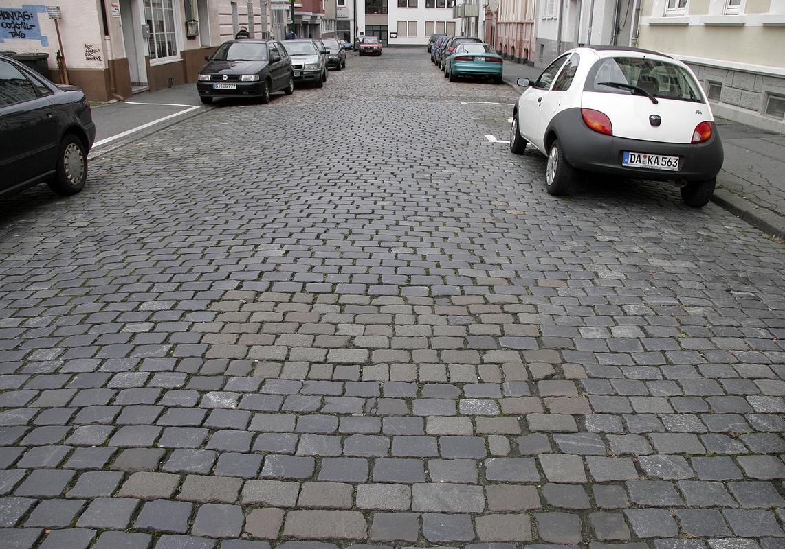 1897 ließ die Stadt Darmstadt am Anfang der Erbacher Straße, zwischen Merck- und Pützerstraße eine Straßenpflaster-Probestrecke aus neun verschiedenen Steinsorten verlegen. Vier von diesen Pflasterflächen sind bis heute erhalten und gehören im hessischen Vergleich zu einer der wenigen erhaltenen Musterflächen. Die einzelnen Pflasterabschnitte aus unterschiedlichen Steinsorten werden jeweils durch eine Reihe hellgrauer Granitsteine klar voneinander getrennt. Die Steingröße entsprach der damaligen, von der Stadt Darmstadt festgelegten Normalgröße von 14-20 cm Länge und 11-15 cm Breite. Sie wurden, wie es bis zur Jahrhundertwende üblich war, in Reihe angeordnet. Über die verwendeten Steinmaterialien und für welche Pflasterart sich die Stadt entschieden hat, gibt es keine Angaben.