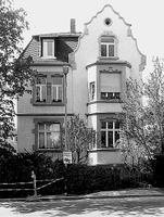 Gründerzeitvilla der Zeit um 1900. Zweistöckiger Putzbau auf hohem Sandsteinrustikasockel mit Mansarddach, Risalit und geschweiftem Blendgiebel zur Straße. Baugliederungen wie Gesimse, Gewände, Rahmung des Blendgiebels und Eckbetonung in Sandstein. Große Rechteckfenster mit unterschiedlicher, reicher Profilierung, zweistöckiger Erker am Risalit. Originale Einfriedung erhalten.